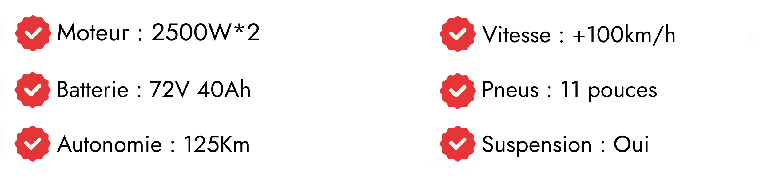 *Autonomie basée sur une charge de 75kg à une température de 25 °C, en roulant à 15km/h à vitesse constante sur un test de route plate.* Sauf indication contraire, les données impliquées dans ce site web sont les résultats de tests internes. * En raison des caractéristiques des batteries au lithium, après une période d’utilisation, la capacité maximale de la batterie diminuera. Les modèles affichés sur ce site Web varieront selon le marché dans différents pays et régions. Le contenu de ce site web est uniquement à titre de référence. Pour les spécifications du véhicule et les informations sur la configuration standard, veuillez vous référer aux informations fournies sur le lieu d’achat réel. * Les images, modèles, performances et fonctions figurant sur cette page ne sont donnés qu’à titre indicatif. Pour plus de détails, veuillez vous référer au produit réel.