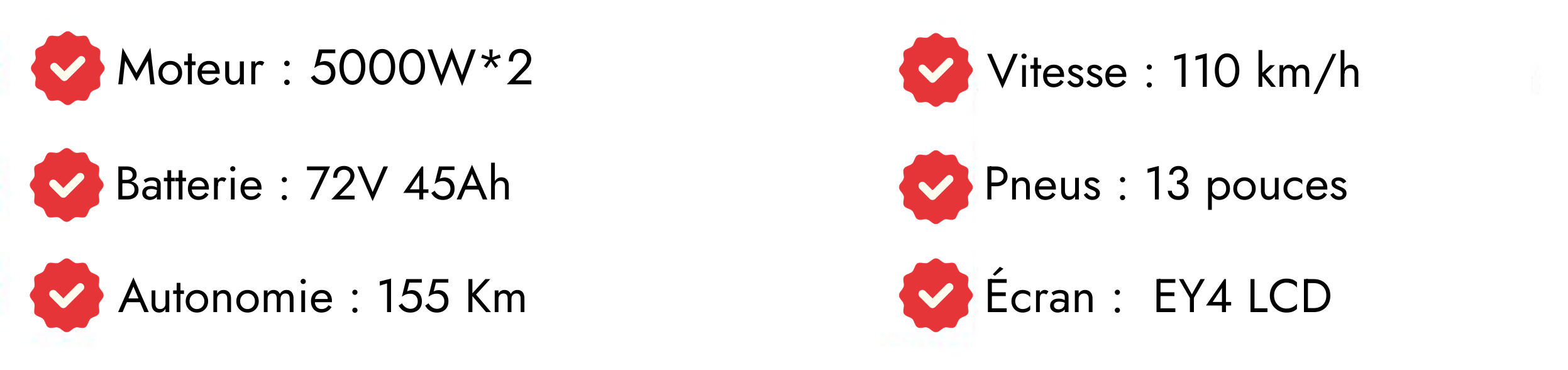 Deux moteurs HUB (Direct Drive) sans balais de 4150W chacun capables de propulser la bête à une vitesse maximale de 110 km/h **.